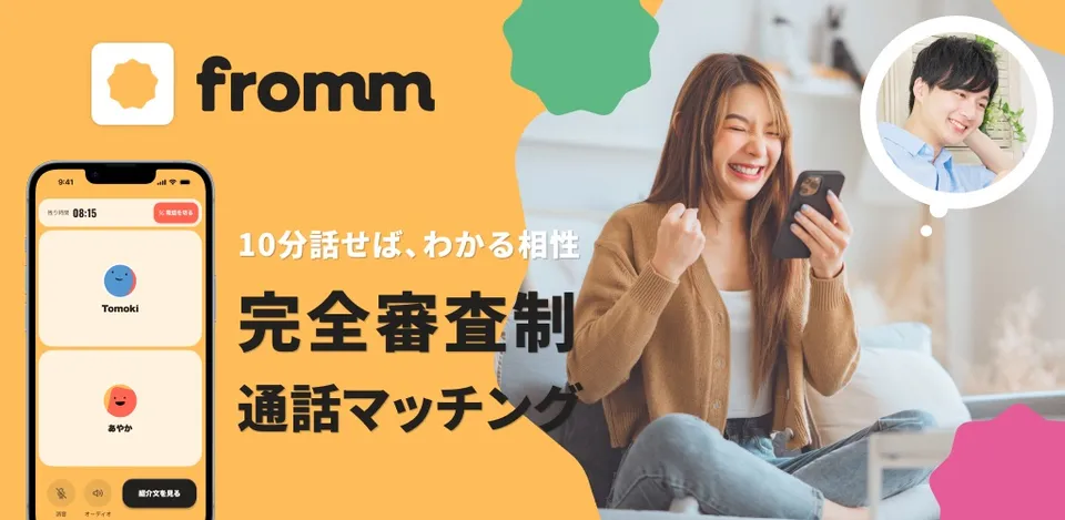 いいえ、顔写真は不要です。frommはニックネームと声だけでつながる完全匿名の仕組みなので、身バレの心配なく安心してご利用いただけます。
